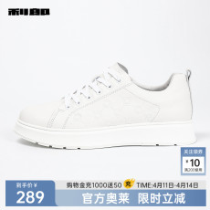 官方 牛皮革板鞋男士休闲小白鞋压花百搭春秋款新款鞋子男